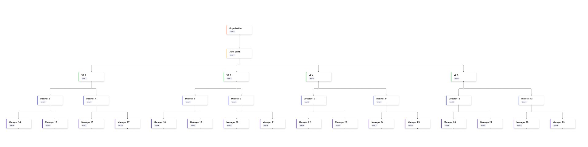The Org Tree represents your organizational hierarchy and structure in SEI 2.0. It provides the foundation for grouping developers and replicating the org hierarchy into SEI 2.0. At present, the Org Tree is powered by CSV-based imports from your HRIS system (e.g., Workday, BambooHR). The CSV must include a contributor attribute (such as ManagerEmail or ManagerID) that defines the reporting relationship between individuals.